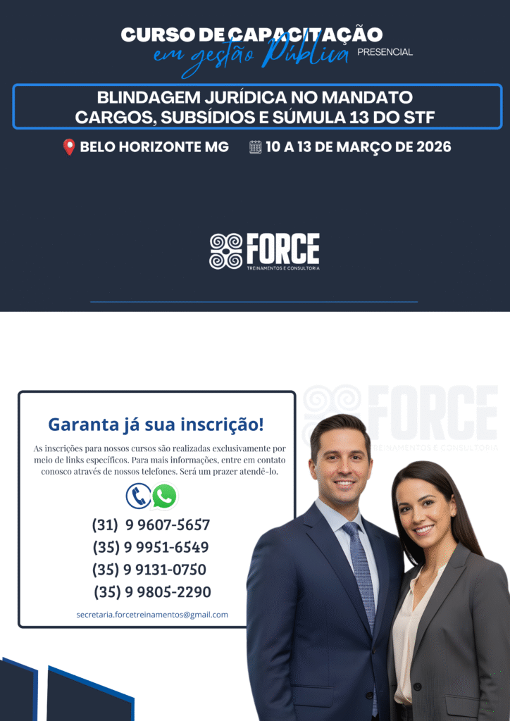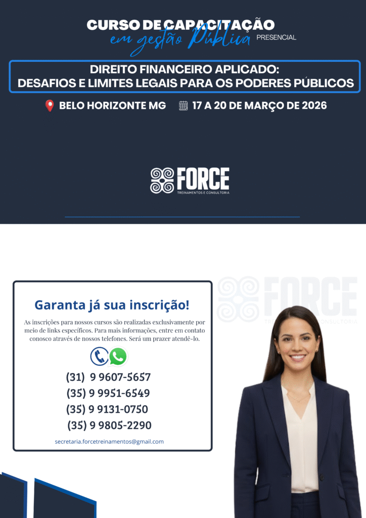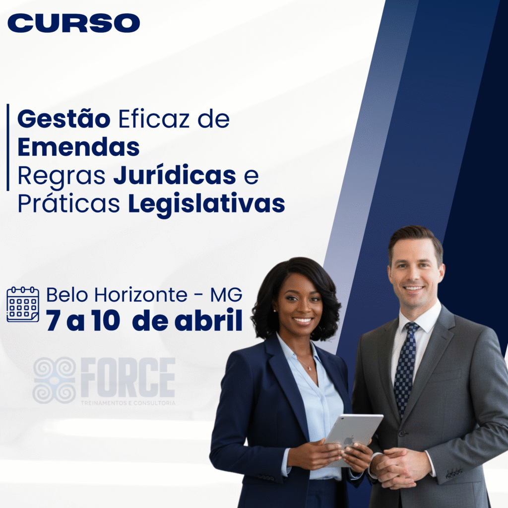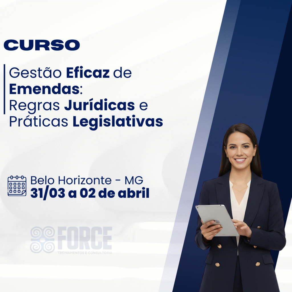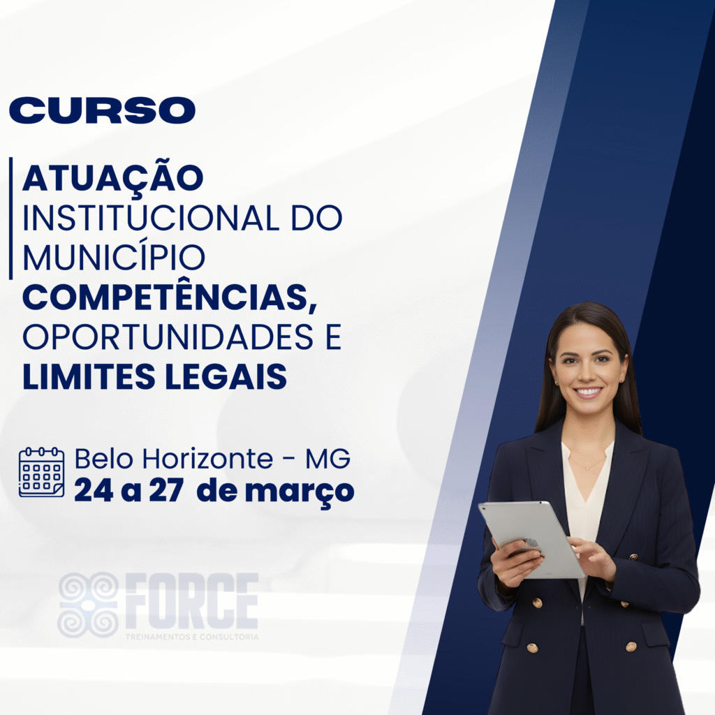 A Force Treinamentos e Consultoria é um Instituto especializado na capacitação de agentes públicos, servidores e assessores. Atuamos em todo o Brasil, com foco em cursos práticos e atualizados, especialmente voltados para Câmaras Municipais e Prefeituras, contribuindo para uma gestão pública mais eficiente e comprometida com resultados.