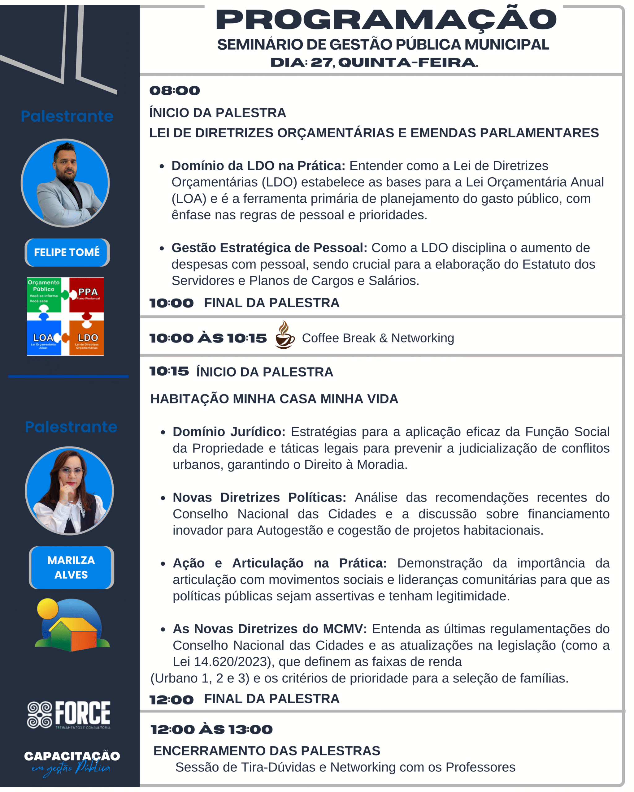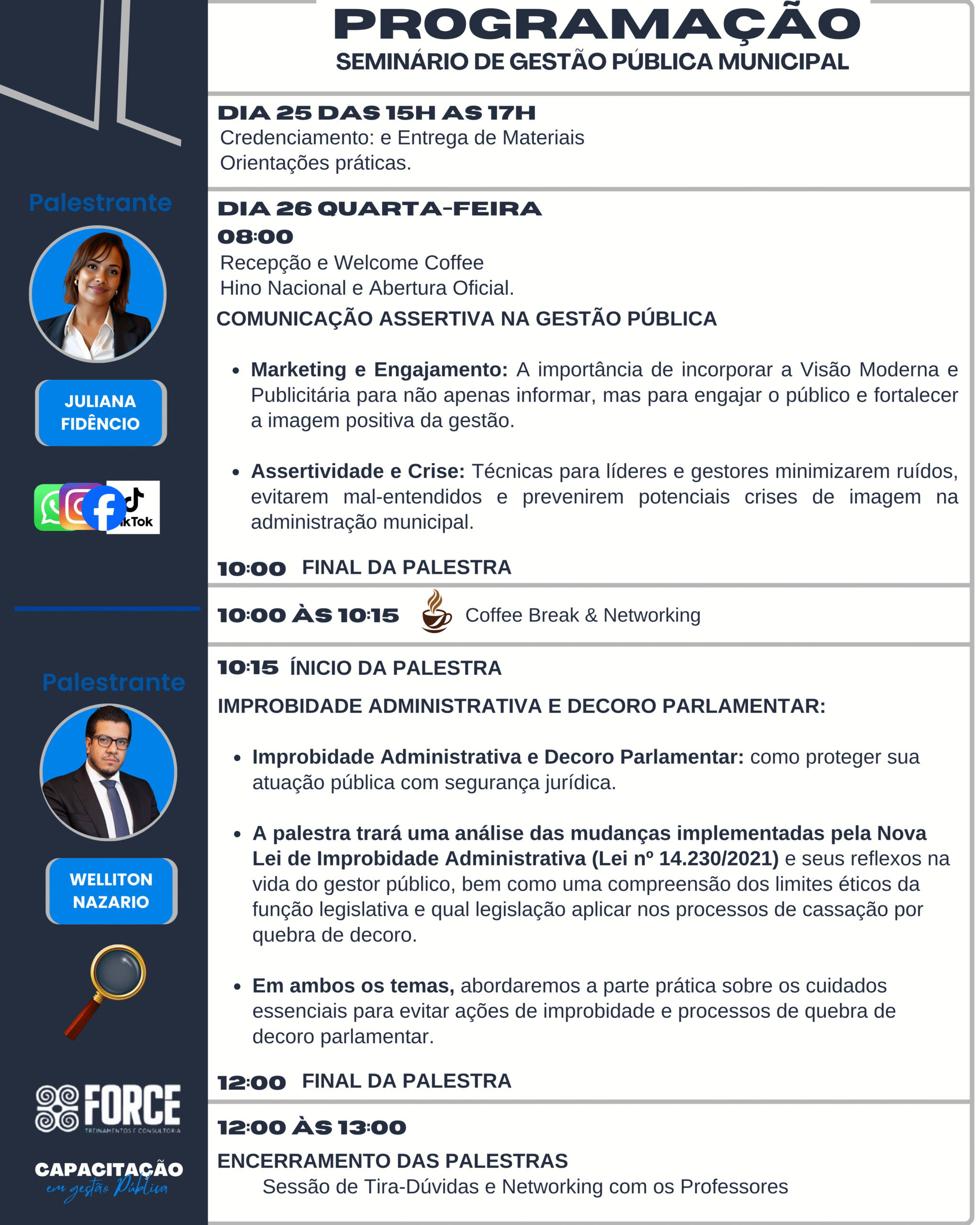 • Em ambos os temas, abordaremos a parte prática sobre os cuidados essenciais para evitar ações de improbidade e processos de quebra de decoro parlamentar. PALESTRANTE Welliton Nazario
