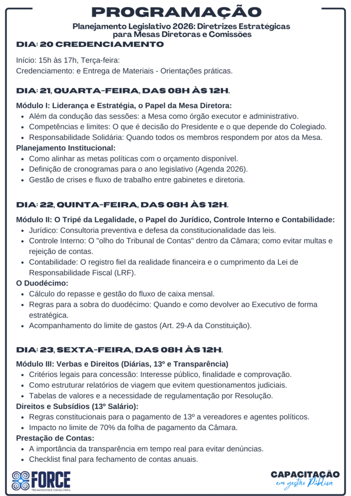 Planejamento Legislativo 2026: Diretrizes Estratégicaspara Mesas Diretoras e Comissões