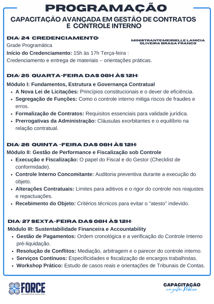 Capacitação Avançada em Gestão de Contratos e Controle Interno