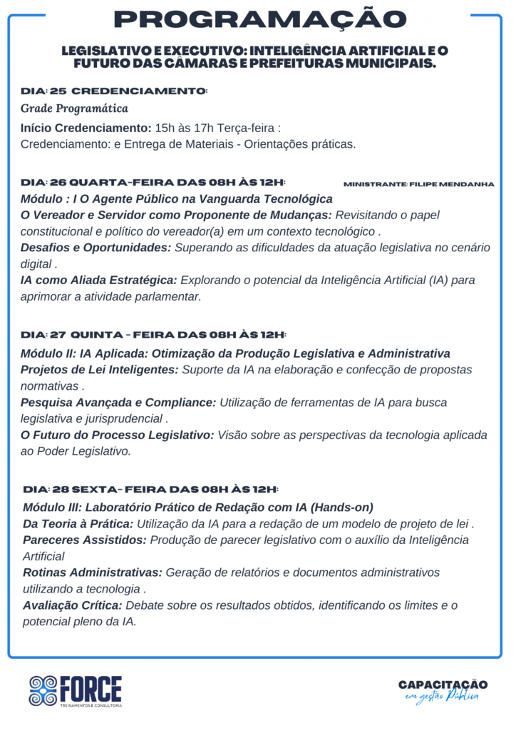 CURSO: Legislativo e Executivo: Inteligência Artificial e o Futuro das Câmaras e Prefeituras Municipais.